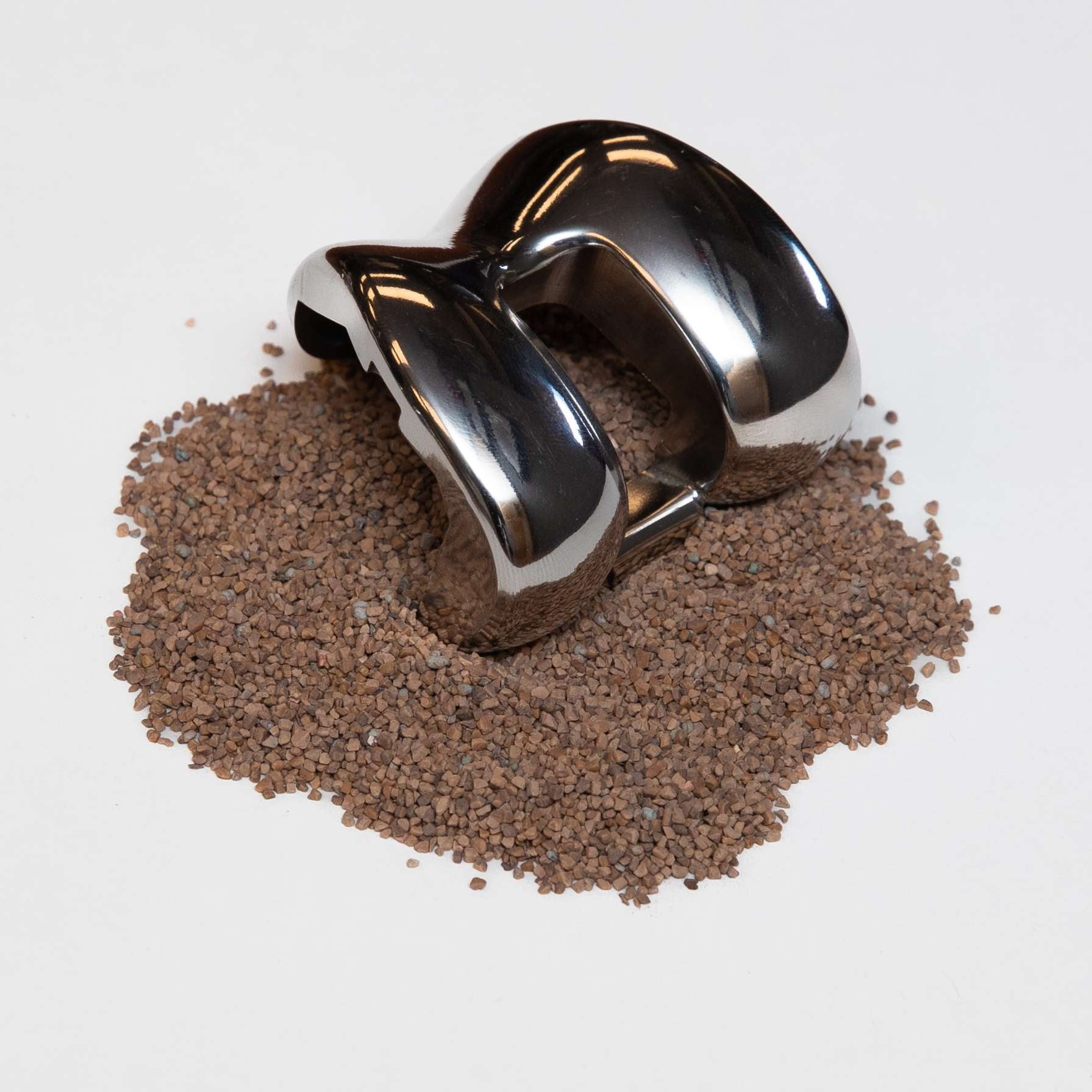 Description: Treated walnut shell. The final step 3 produces the ultimate reflecting polished surface. It can be used in all types of mass finishing equipment, even high energy machines, for use on all medical components where lowest Ra surface is required. Used as a final step of smoothing and polishing of all materials, especially medical implants and jewelry. Mirror finishes can be achieved if surface is prepared properly.